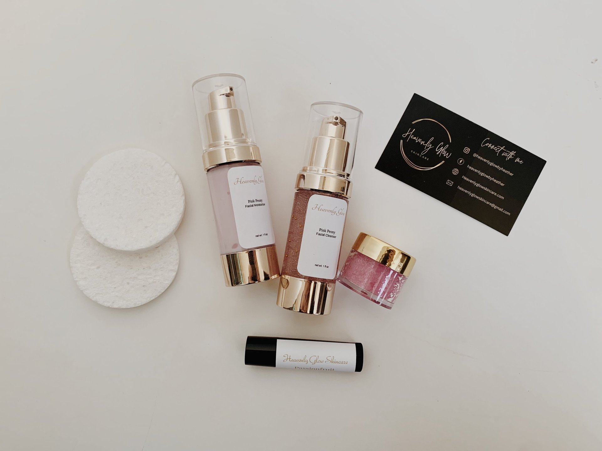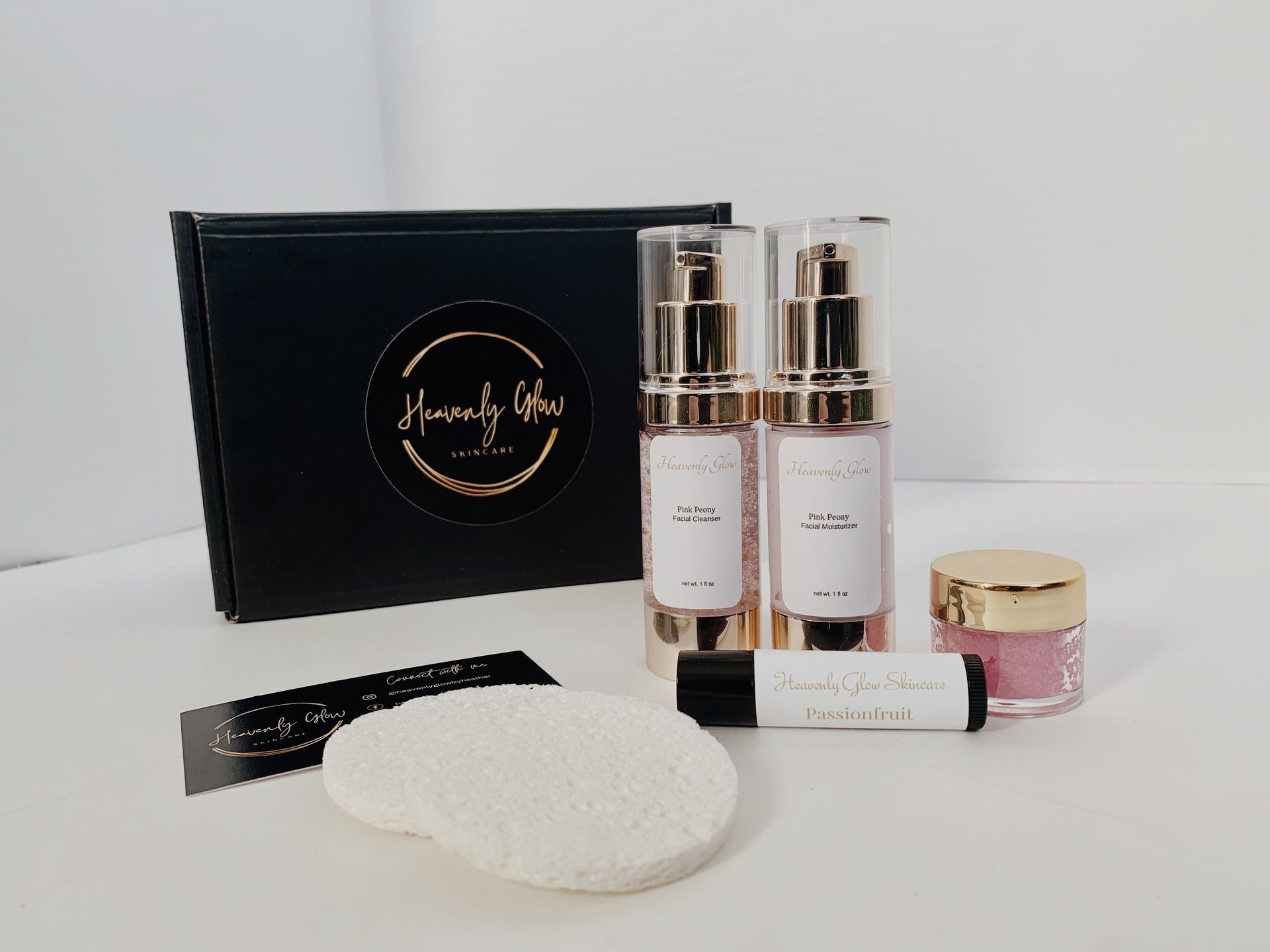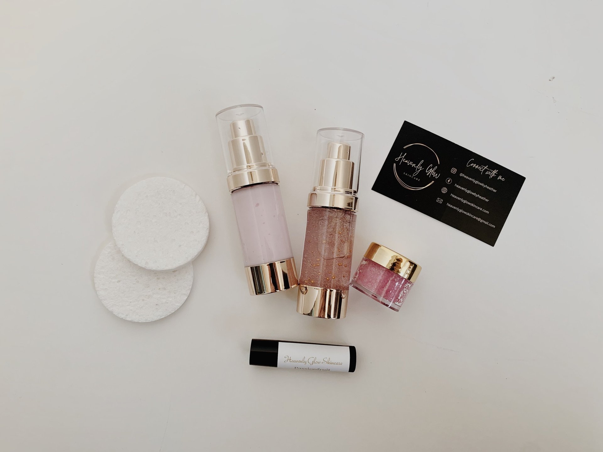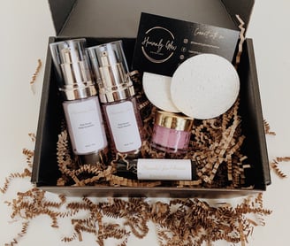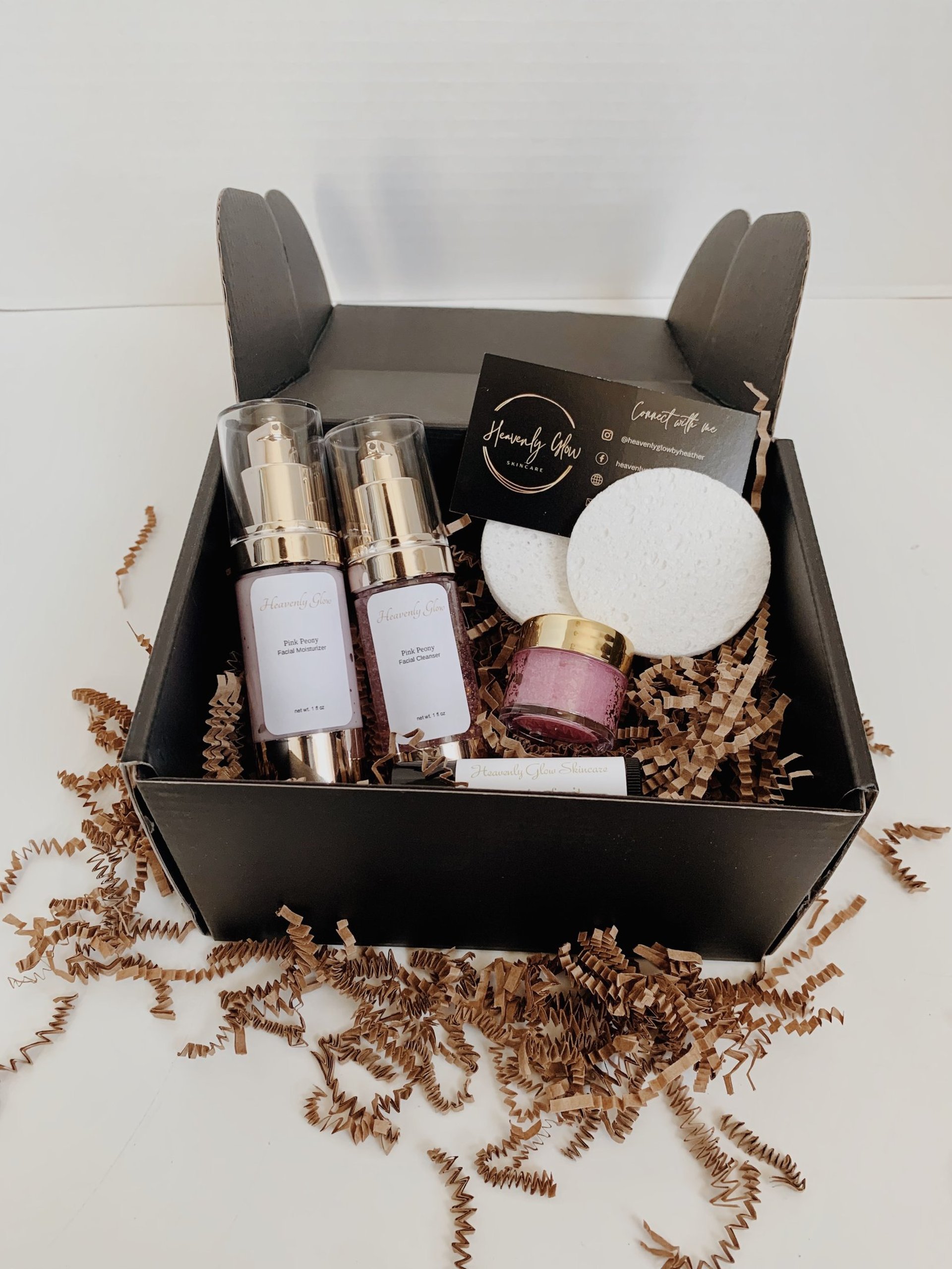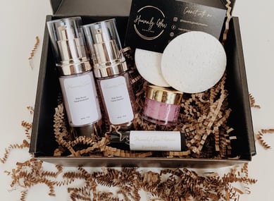 Pamper your guest with a mini me spa kit from Heavenly Glow Skincare. The kit features a mini lip scrub, lip balm, moisturizer and toner.